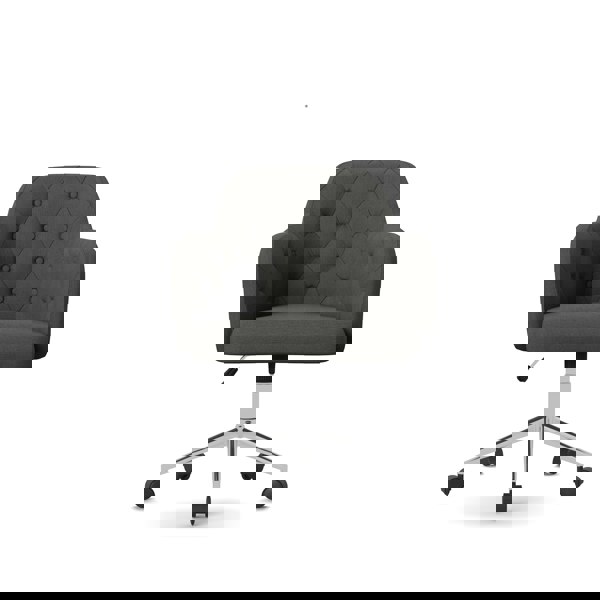 The Washington chair perfectly blends neutral grey fabric with classic styles making it ideal for your living or Dining Chair room. The cushioned wrap around frame combines elegantly with the button back styling providing a sophisticated look, whilst the comfortable seat and sturdy chrome base gives you the support and strength you need in a home office chair.