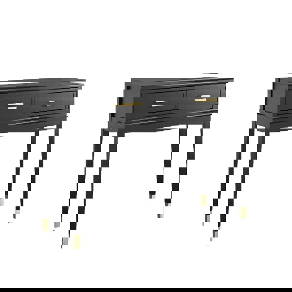 Give your living room a glow up with the CosmoLiving by Cosmopolitan Westerleigh Console Table. Accented by trendy gold hardware and dipped feet, the Westerleigh includes two spacious drawers to hold all of your ~things~. Show off your style using the top to obsessorize while you nail the décor game. Available in white, graphite gray, or matte black, this table is a top-notch addition to any home.