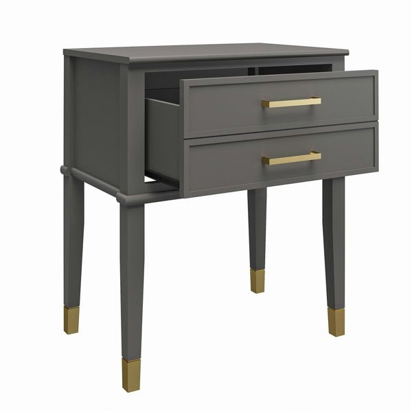 Take note: you can organize your living space and get the style you ~deserve~ with the CosmoLiving by Cosmopolitan Westerleigh End Table. The sophisticated design is accented by trendy gold hardware for a bold Cosmolicious look that we’re diggin’. Here are the deets: the drawer front looks like two drawers but gives you all the space to store larger items out of sight while the spacious table top provides room for all of your obsessories. All four wooden sides are finished and available in white or graphite gray, so you can place the End Table wherever your heart desires and nail the décor game.
