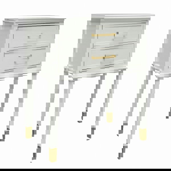 • Add trendy table space to your living room with the CosmoLiving by Cosmopolitan Westerleigh End Table.The drawer front gives the look of 2 drawers and is large enough to keep any size item stored away.Clean white or edgy dark gray finish with gold accents adds a sophisticated touch to your living space.Wipe clean with damp cloth.Available in multiple colours