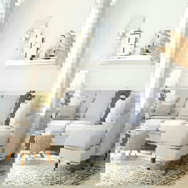 Featuring pocket coil interior support and plush cushion seating, this gorgeous piece provides the perfect spot to decompress when your brain has too many tabs open! The Winston packs a punch while seamlessly fitting into a petite design or smaller living room space with its detachable ottoman allowing you to adjust the L-shape and reverse the chaise to fit your preferred seating orientation. Offered in Light Gray Linen or Navy Blue Velvet, you can style the Winston to complement any design aesthetic. In addition to the pocket coil, this sofa sectional is built with a sturdy wood frame and sits on solid wood legs to provide long-lasting durability, support and comfort for you, your friends and your family.