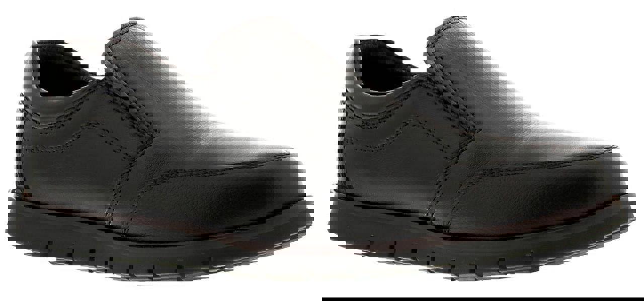 Mens leather upper slip on shoe, featuring a padded collar and dule elasticated gusset for a personalised fit. Ideal for the office or a special occasion.