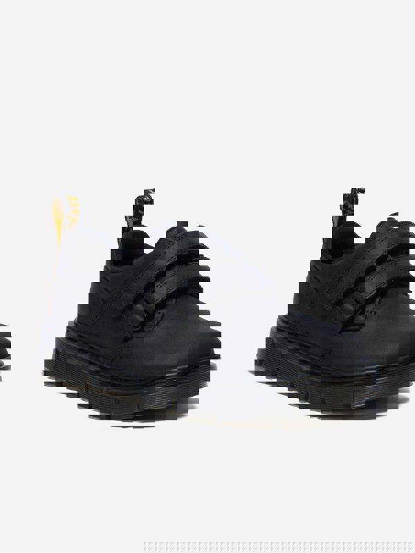 Dr. Martens boys’ Raffe shoes in black bring a bold look with a focus on individuality. The upper uses rugged Wyoming leather with a subtle grain and an oily finish, paired with a quick-release hook and loop strap for easy fastening. Inside, a textile lining sits alongside padded collars for added comfort, while a flexible cemented sole construction completes the profile.