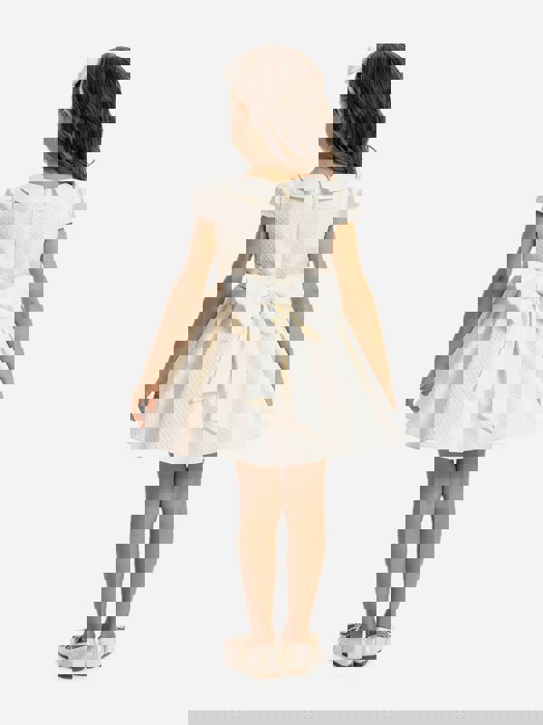 This Dress & Fleur baby girls dress comes as a two-piece set with a matching hairband. Made in white textured jacquard, it has a Peter Pan collar and pearl-accented detailing for a refined finish. A delicate bow sits at the waist, while a zip fastening at the back keeps the look neat and streamlined.