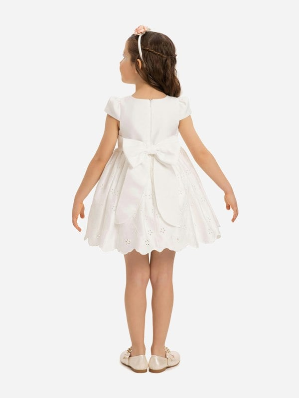 Dress & Fleur brings careful detailing to this baby girls dress and matching headband set in white. The dress has delicate embroidery with floral appliqué, finished with a scalloped hem for a neat outline. A bow at the back adds a defined detail, while the zip fastening at the back keeps the finish clean and secure. Fully lined in cotton, the main outer is made from polyester.