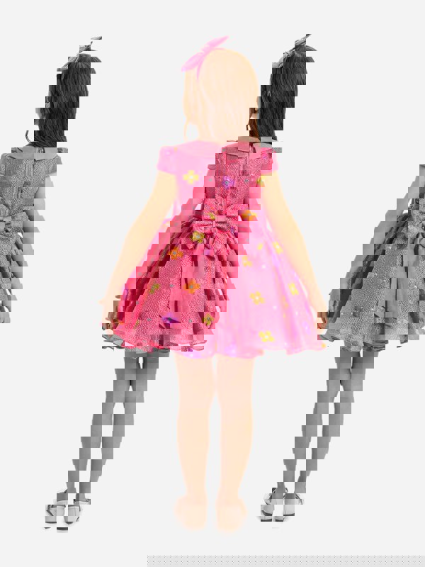 This baby girls floral dress and headband set comes in pink with a woven finish and colourful floral appliqués. A Peter Pan collar and bow at the waist add detail to the silhouette, while a zip fastening at the back keeps the look neat and secure.
