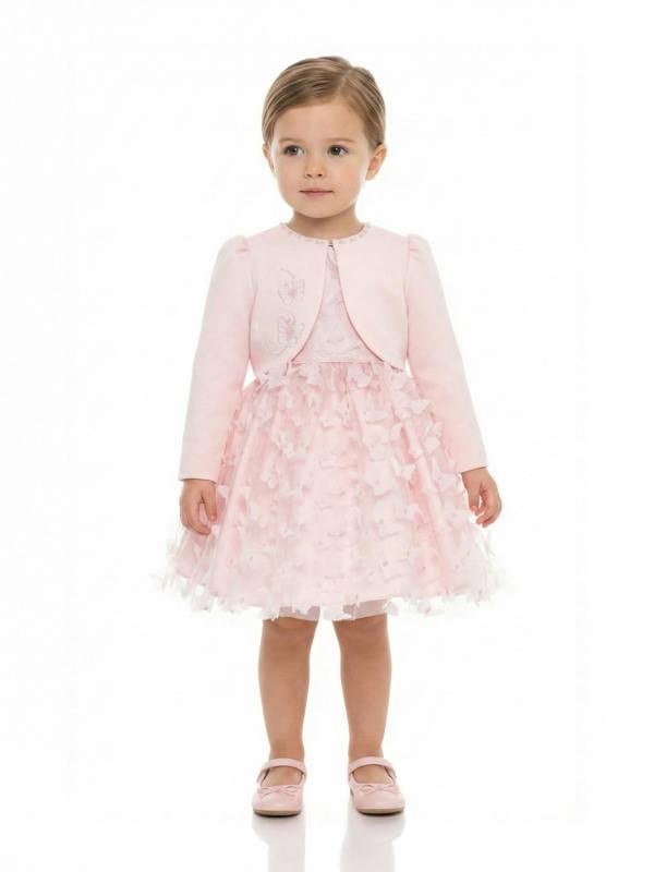 This baby girls occasion set from Dress & Fleur includes a dress and matching jacket in pink. A tailored finish gives the set a smart look for special occasions, with a coordinated colour palette across both pieces.