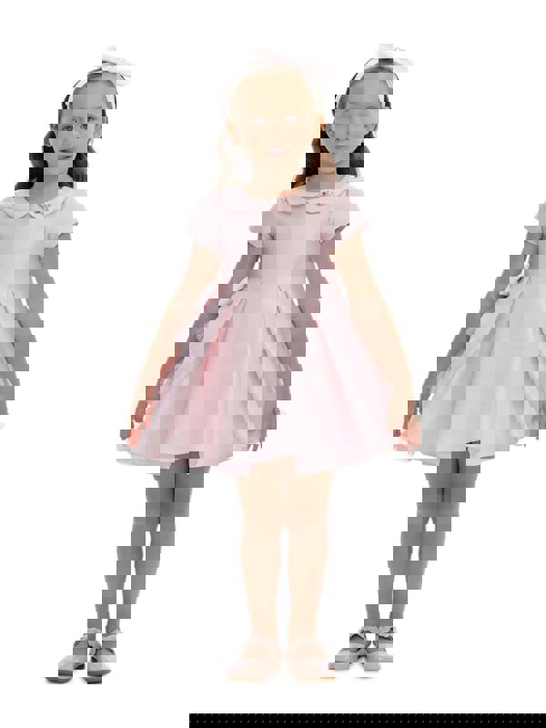 This baby girls occasion dress and headband set by Dress & Fleur comes in pink for the SS2026 season. The outfit includes a coordinating headband to match the dress, creating a complete two-piece look for special events and festivities.