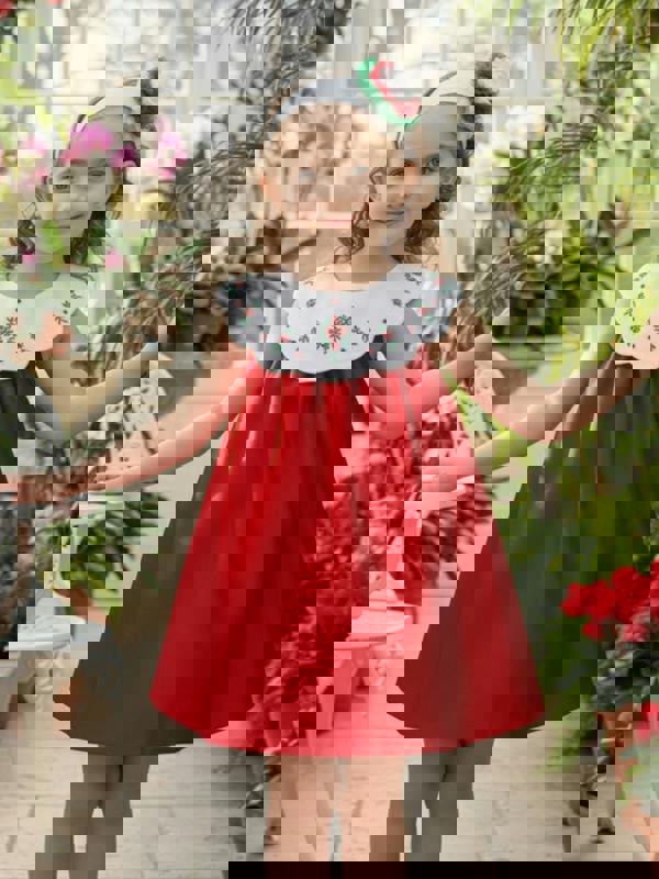 This baby girls occasion dress and headband set by Dress & Fleur comes in a distinctive red hue, making it a standout choice for special events. The set includes a matching headband to coordinate the look, keeping the finish neat and cohesive.