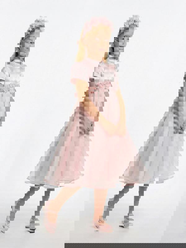 Dress & Fleur Girls Chiffon Flower Dress in pink forms part of the SS2026 collection. Made from chiffon, it has a bright pink finish and a distinctive floral look. Flower appliqués add textured detailing across the design, creating a decorative finish suited to a range of occasions.