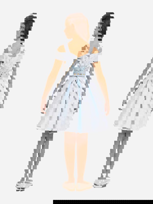 Dress & Fleur brings traditional abstracts together with innovative materials in this girls dress set in blue. The outfit includes a matching belt and shoulder bag, with gold-tone details that coordinate across the accessories. A floral pattern runs through the jacquard fabric, finished with a subtle texture for added depth.