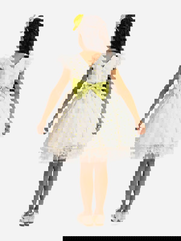 Dress & Fleur combine traditional abstracts with innovative materials for a sophisticated twist. This girls dress with a headband in yellow embodies the label's passion for exquisite pieces.