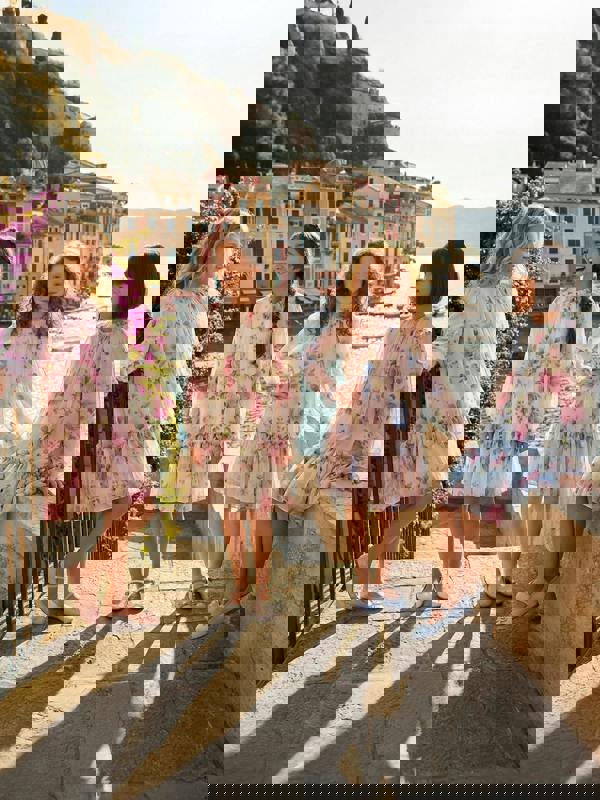 This girls occasion dress by Dress & Fleur comes in ivory with an all-over rose print. The delicate base colour and scattered floral motif create a distinctive look for special events, with the collection noted for SS2026.
