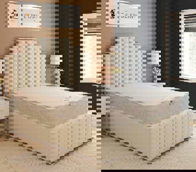 Wrapped in a smooth quilted panel top made from 100% polyester fabric, the surface delivers a cushioned, cloud-like feel from the very first night. Inside, recycled polyester comfort layers provide breathable insulation, enhancing airflow and cushioning while supporting more sustainable sleep choices.