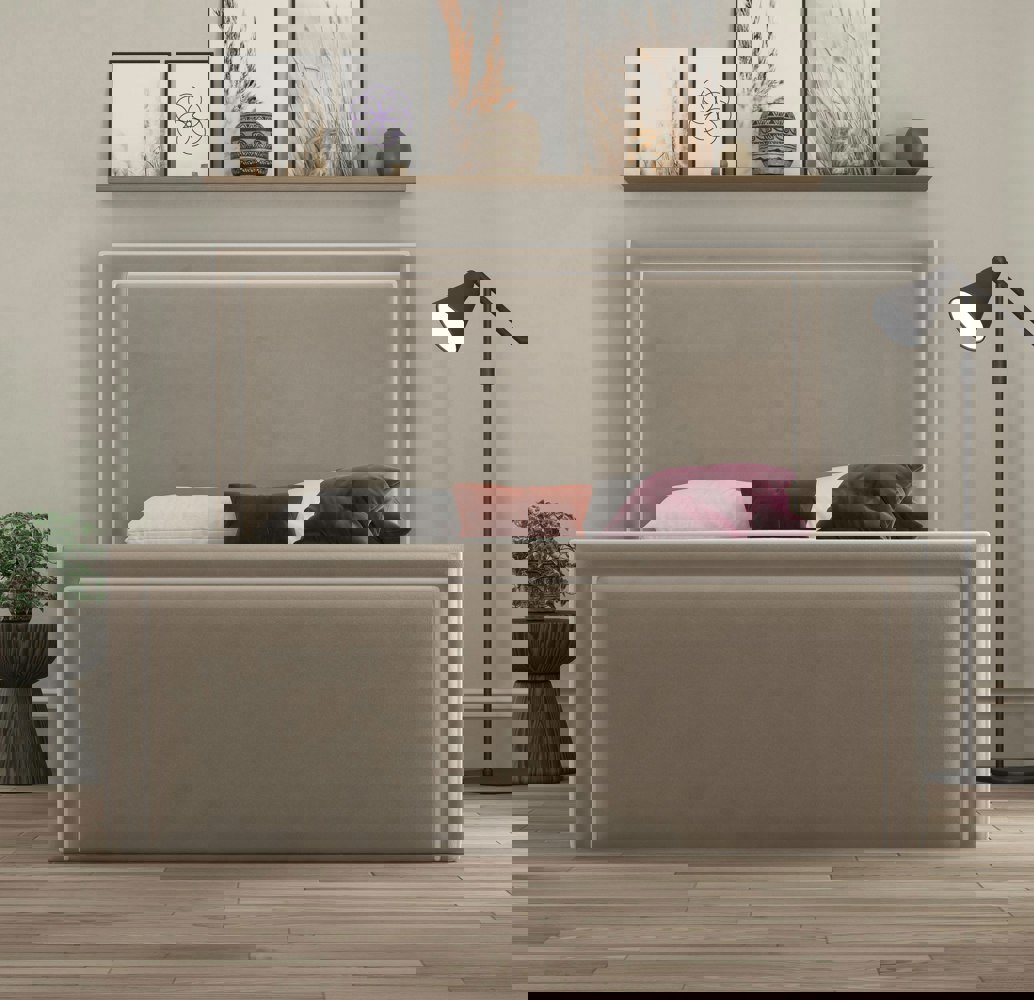 The Verona Piping Bed is a refined blend of timeless design and modern comfort, defined by its clean lines and subtle piping detail. The generously proportioned headboard creates a striking focal point, elevated by the elegant double-border design that adds structure and sophistication without excess. Available in both standard frame and gas-lift ottoman styles, the Verona offers options for those seeking either classic elegance or enhanced functionality through hidden storage.