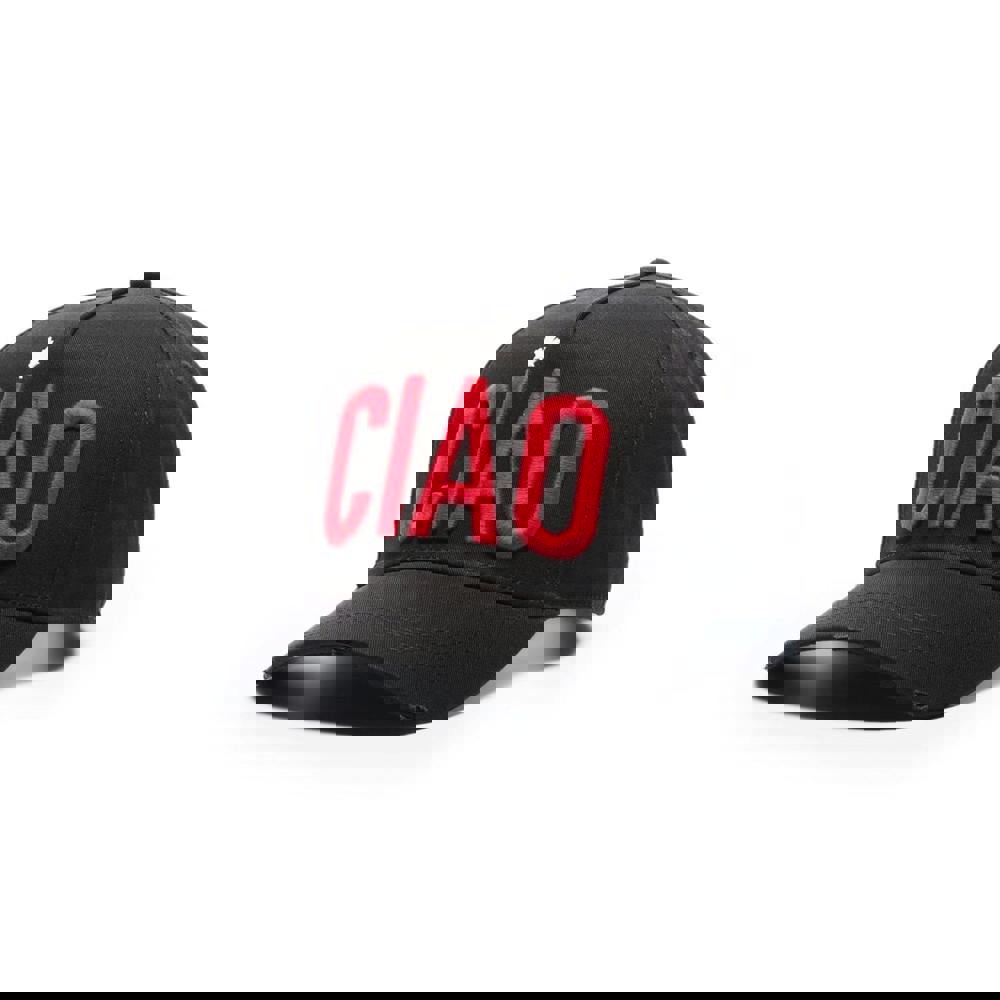 Crafted from cotton in a black colourway, Dsquared2's cap is decorated with a red Ciao slogan to the front and the brand's logo embroidered to the rear.