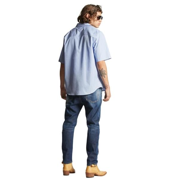 Dsquared2's Cool Guy jeans epitomise Italian craftsmanship with a distinctly contemporary edge. Cut in a regular fit from stretch denim, these dark wash jeans feature the label's signature used finish and strategically placed worn patches for an intentionally lived-in aesthetic. The five-pocket construction is anchored by a button waistband, whilst contrasting twin-needle stitching and the iconic Dsquared2 logo label sewn to the back flap deliver unmistakable brand presence. Made in Italy, these jeans balance premium construction with effortless cool