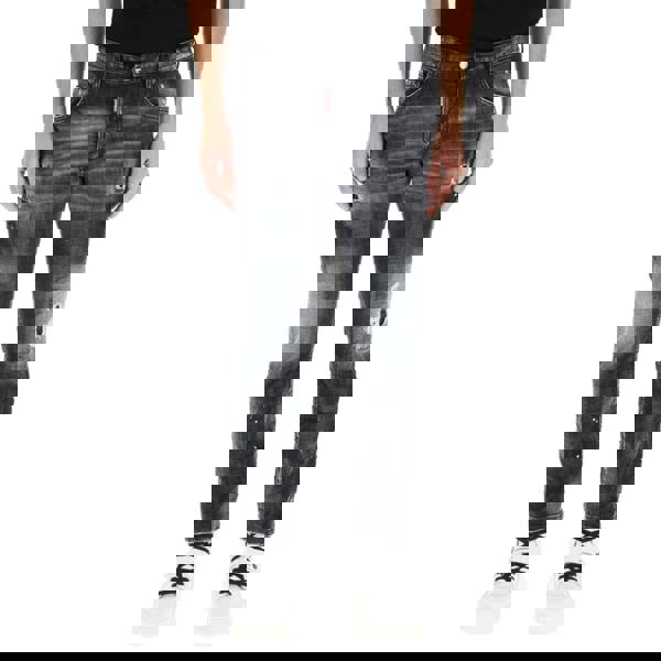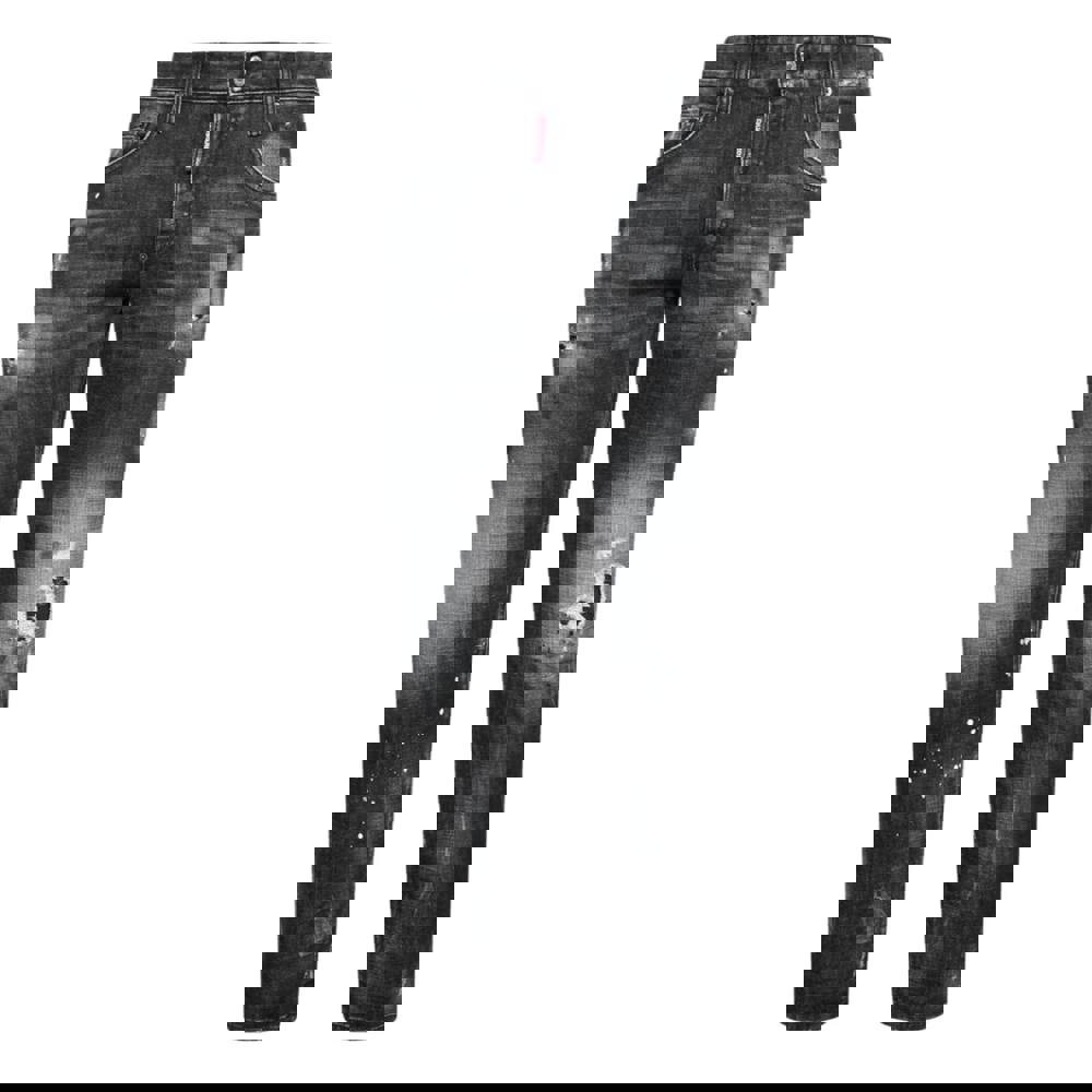 These five-pocket jeans by Dsquared2 are crafted in stretch denim with black ripped knee wash and worn-out details