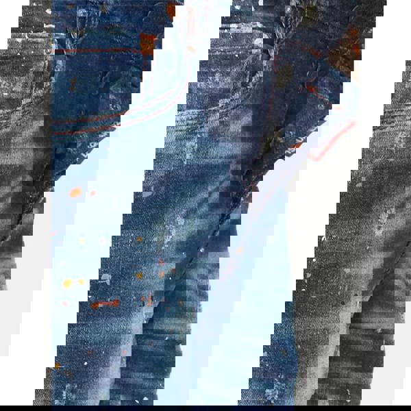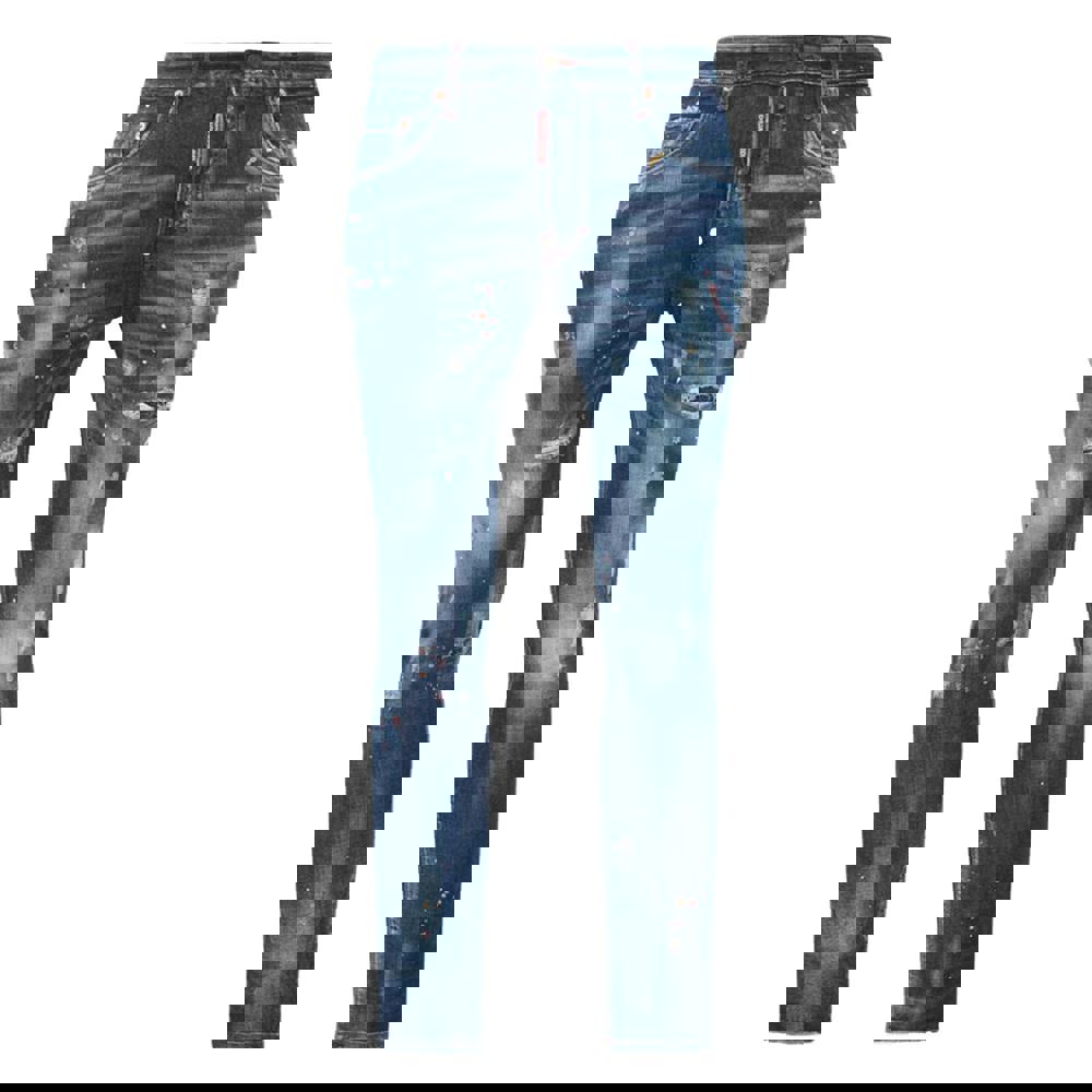 Dsquared2 Super Twinky Jeans Denim. A signature look from Dsquared2. The Super Twinky Jeans Denim are crafted from a soft and premium cotton mix fabric with distressing throughout for a lived-in look. The comfortable fit is complemented by distressed paint splatter detailing and dual blue leather brand patches at the back. With button-fly fastening, this versatile pair is designed to be worn in any occasion where you want to feel casual and cool while looking your best