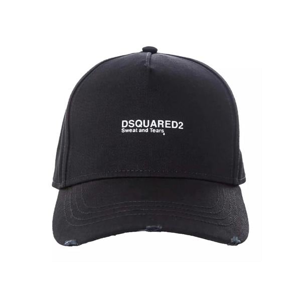 Crafted from 100% cotton, the Dsquared2 Sweat and Tears Baseball Cap in Black combines comfort with distinctive style. It features a curved front adorned with the iconic Dsquared2 Sweat and Tears logo, a distressed design for an edgy, worn-in look, and the Dsquared2 Power Twins signature on the back. An adjustable closure ensures a perfect fit, making this cap a refined accessory for everyday wear