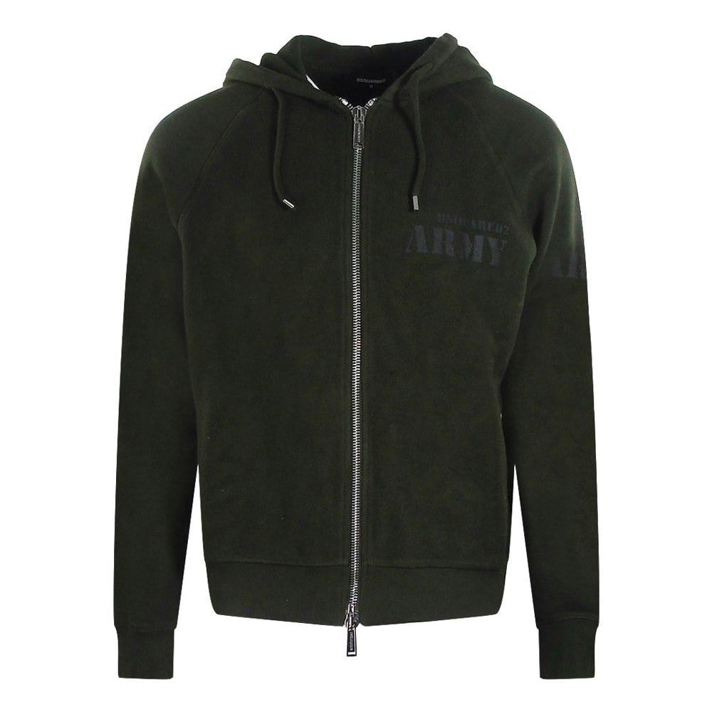 The DSQUARED2 Army Logo Military Green Hoodie is a stylish and comfortable addition to any wardrobe.