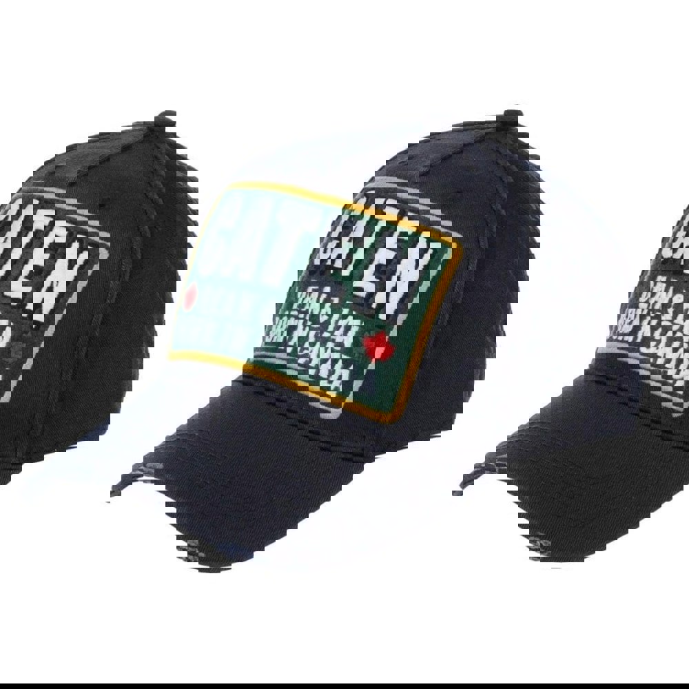The Dsquared2 Born In Canada Design Navy Blue Cap offers a refined blend of style and practicality for men who appreciate iconic fashion.