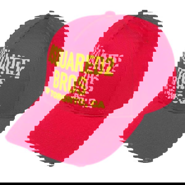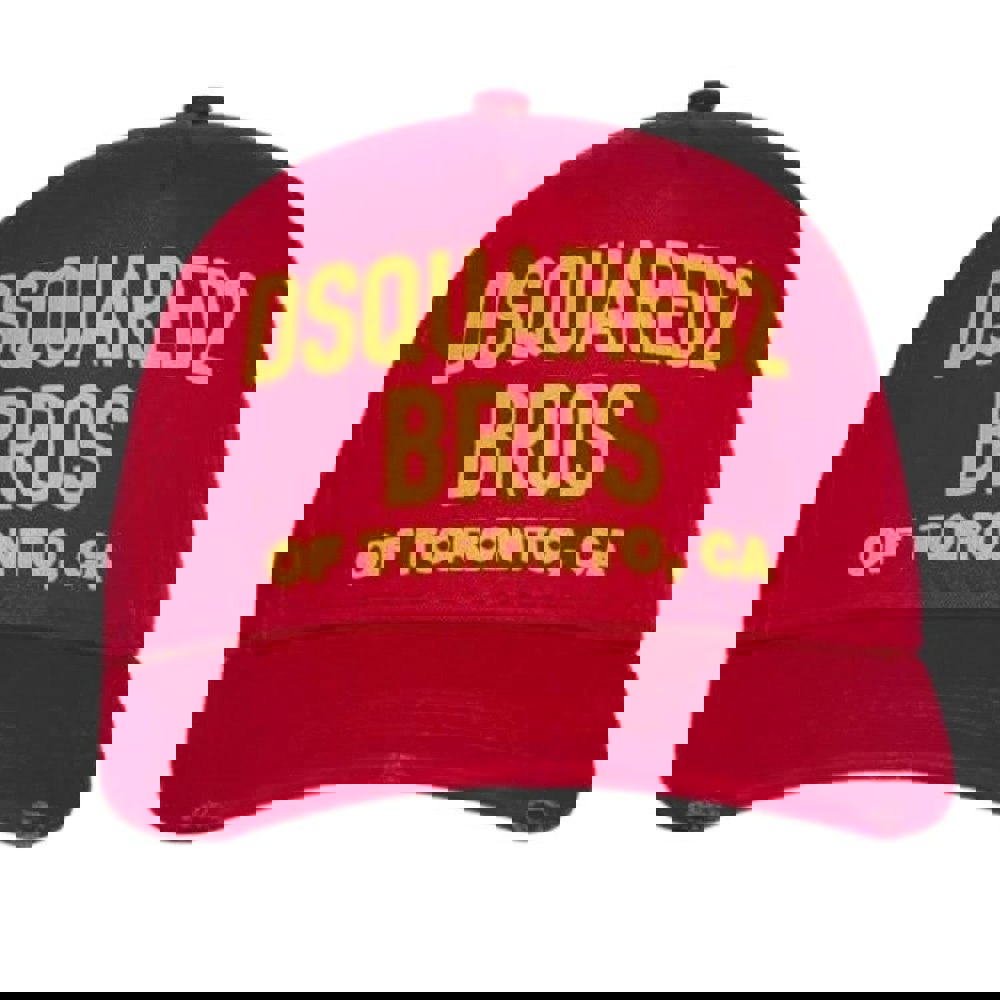 The DSquared2 Bros Of Toronto Baseball Cap in red is a classic, everyday accessory designed for easy wear. Featuring a curved brim and a structured 6 panel design, it offers a clean, traditional baseball-cap shape that works well for casual outfits and off-duty styling.