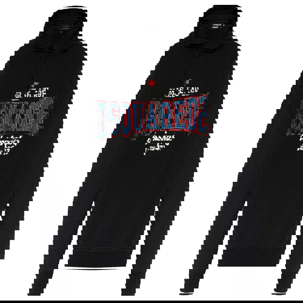The Dsquared2 College League Logo Cool Fit Black Hoodie is crafted from 100% premium cotton, ensuring exceptional comfort and breathability. Designed with a modern, tailored fit, it features elasticated cuffs and waistband for a snug and secure feel, perfect for everyday wear. The standout large Dsquared2 College League graphics across the front add a bold, stylish edge to your casual wardrobe. This hoodie combines effortless style with quality craftsmanship, making it an ideal choice for men who want to make a confident and fashionable statement wherever they go.