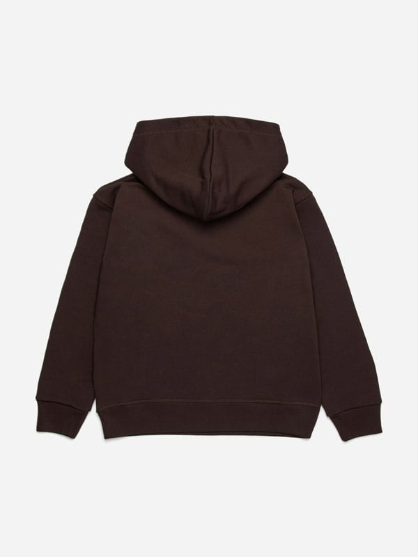 DSquared2 Kids Icon Pocket Hoodie in brown, part of the SS2025 collection. The design comes in a rich brown colourway and includes an icon pocket detail. A versatile hoodie style for everyday wear, with a unisex look stated as suitable for both girls and boys.