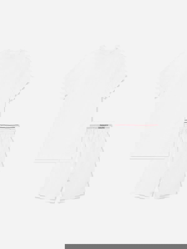 Dsquared2 Kids short pyjama set in white for boys and girls, from the SS2025 collection. This two-piece set keeps the look clean and simple in a pristine white finish, suited to bedtime and sleepovers.