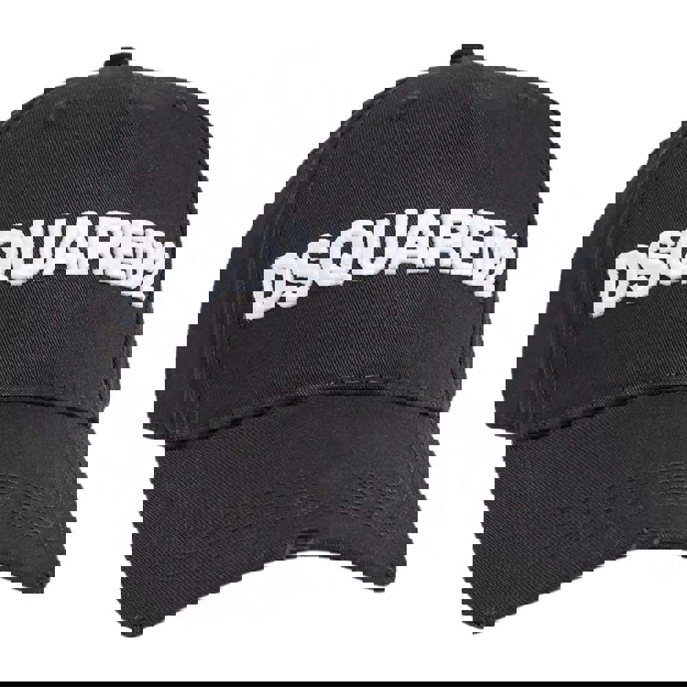 The DSquared2 Logo Baseball Cap in black and white is a classic 6-panel design, finished with an embroidered logo for a clean, premium look. A curved peak and button at the top complete the traditional baseball-cap silhouette, making it an easy choice for everyday wear.