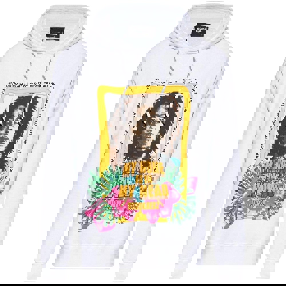 This men’s hoodie from DSquared2 comes in white with a printed design and 100% officially licensed Bob Marley branding. Made from 100% cotton, it has a regular fit and a hooded neckline with a drawstring and sew-on hood construction. Long sleeves and elasticated cuffs keep the silhouette clean and practical for everyday wear.
