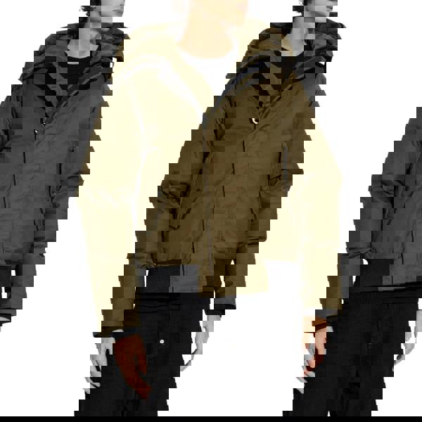 Dsquared2 brings a modern edge to cold-weather dressing with the Techno Down hooded bomber jacket in military green. Made in Italy, it pairs a classic bomber shape with a hooded silhouette for a clean, practical finish.