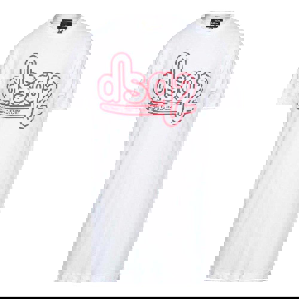 This DSquared2 unisex adult T-shirt comes in white with a printed bubble logo design. Made from 100% cotton, it has a crew neckline and short sleeves for a clean, simple finish. The skinny fit creates a close-to-the-body silhouette, making it suitable for everyday wear on its own or layered under casual outerwear.