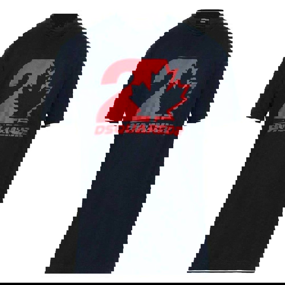 This DSquared2 unisex adult T-shirt is made from 100% cotton and finished in dark navy. It has a crew neck and short sleeves for a clean, casual profile. The design includes a logo and maple leaf detail.