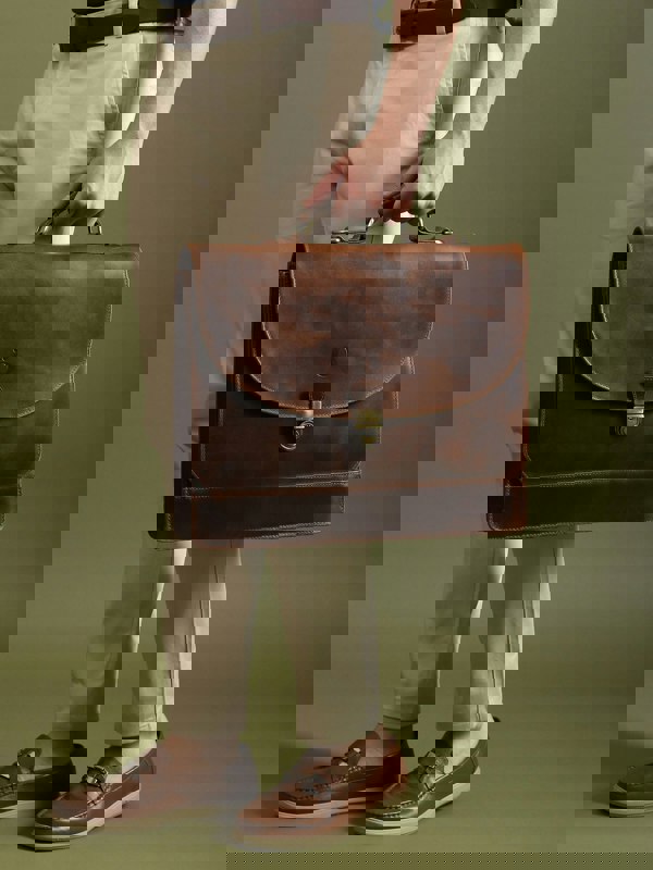 Handcrafted from full-grain buffalo leather, the Yorke Messenger Bag is built for style, strength, and everyday functionality. With a padded 15” laptop compartment, three interior sections, and front pouches, it keeps work and travel essentials organized. Adjustable straps and antique brass hardware add rugged durability, while optional personalization makes it the perfect gift for men — whether husband, dad, or son. A timeless companion for work, business trips, or weekend city breaks.