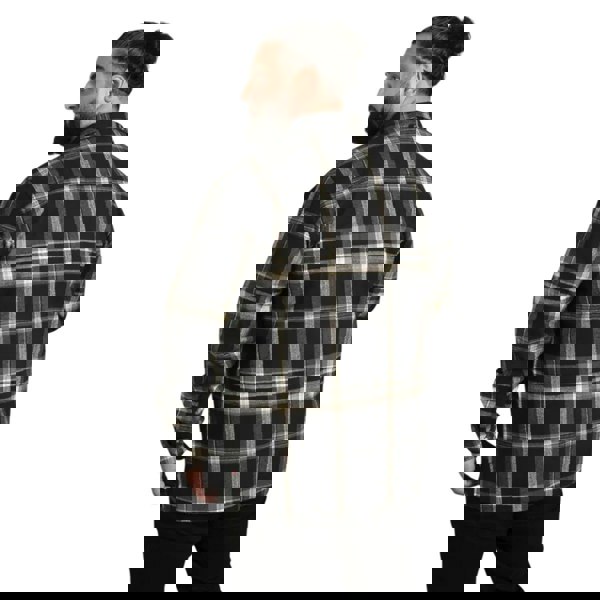 This checked shirt jacket is made from 100% cotton with a soft-touch finish. It has a heavyweight feel and uses breathable, durable fabric technology. The black and grey design is finished with a turn-down collar and long sleeves for easy layering.