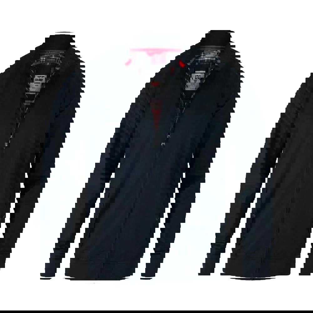 Duke Mens D555 Kent Harrington jacket in navy from The Duke Clothing Company. Made from cotton with a plain finish, it offers a clean, classic look for everyday wear. The design is finished with a standing collar and a full zip fastening for straightforward layering. Long sleeves are completed with ribbed cuffs, matched by a ribbed hem for a neat outline.