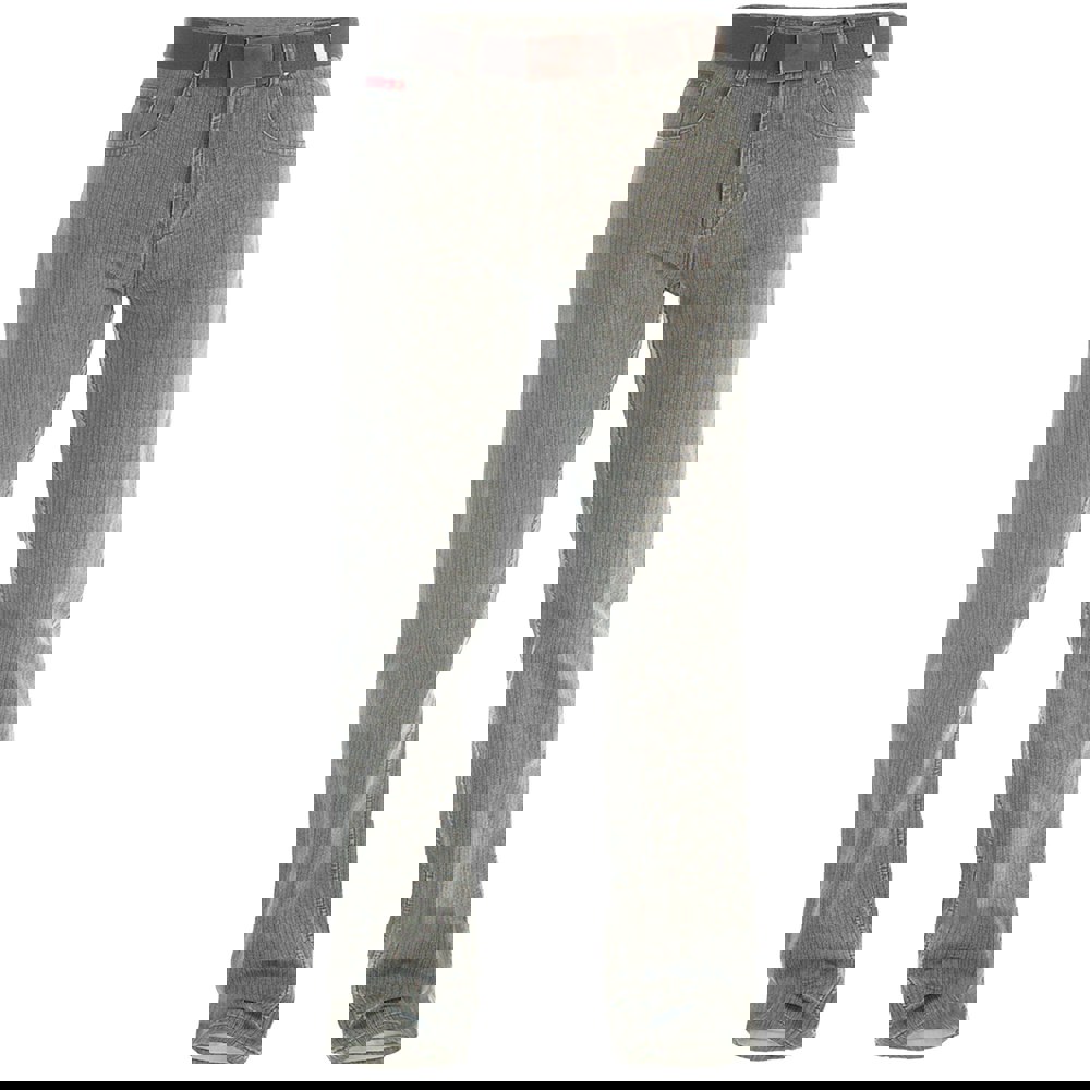The pocket layout includes two front pockets, one coin pocket and two back pockets. Supplied with one belt.