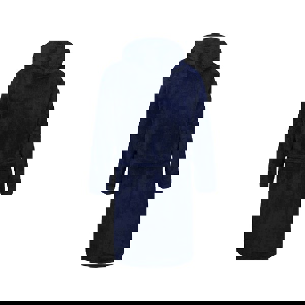 This hooded dressing gown is made from 100% polyester plush fabric with a soft-touch finish. It comes in a plain navy design with a contrast lining, offering a clean, understated look for everyday wear at home.