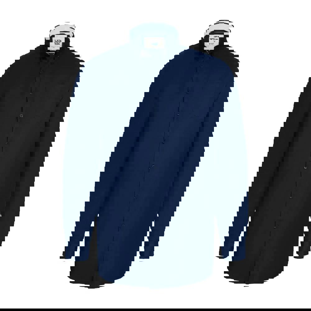 This long-sleeved Oxford shirt comes in navy with a plain finish and a button-down fastening. Made from a cotton and polyester blend, it has a turn down collar and a tall fit. The Oxford cloth construction is listed as breathable and soft, making it a practical option for everyday wear.