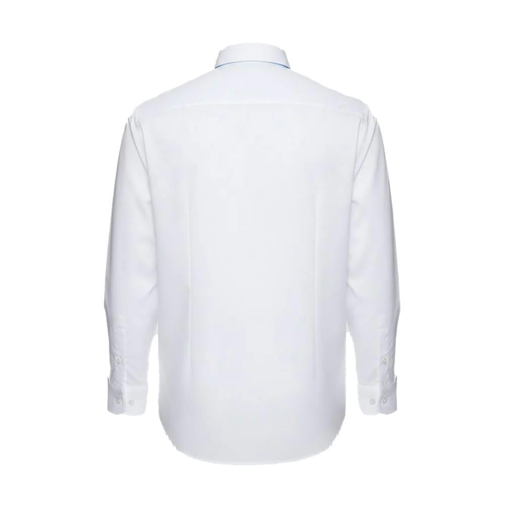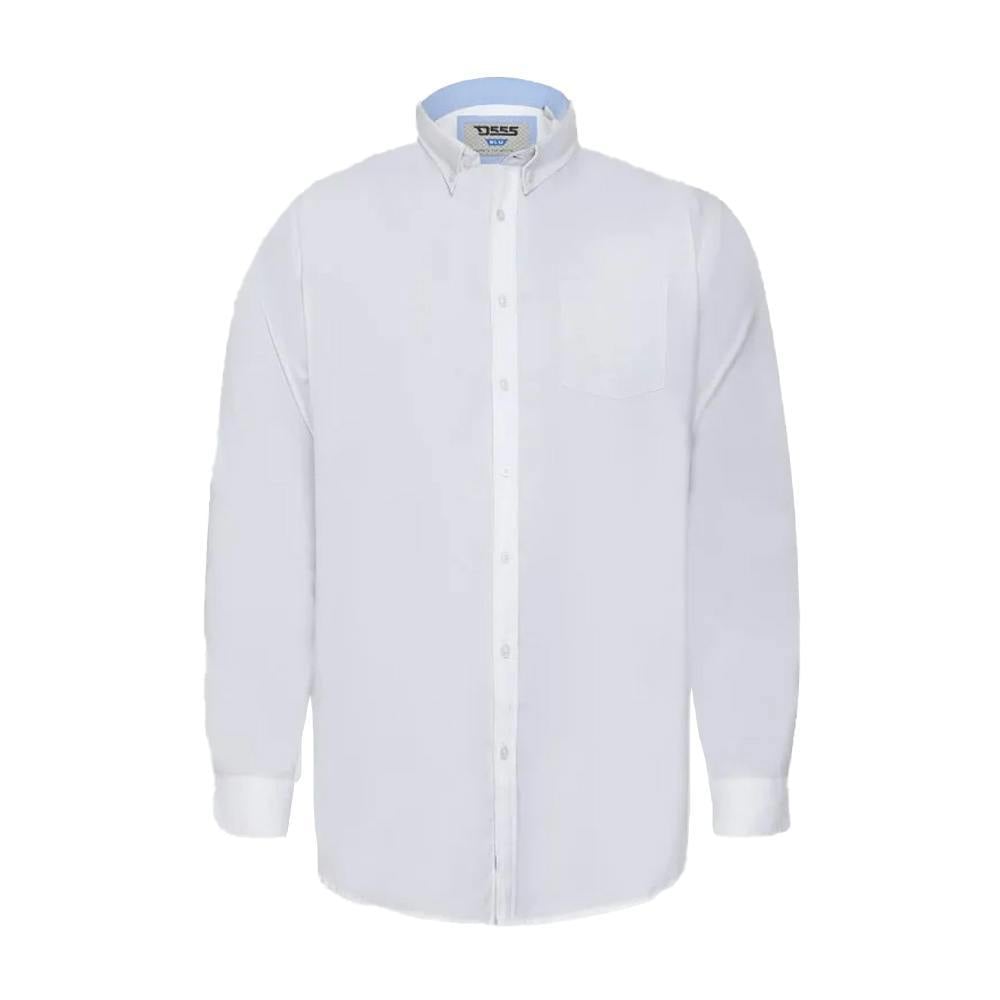 This long-sleeved Oxford shirt is made from a cotton and polyester blend, finished in a plain white design. It has a button-down fastening and a turn down collar for a clean, classic look.