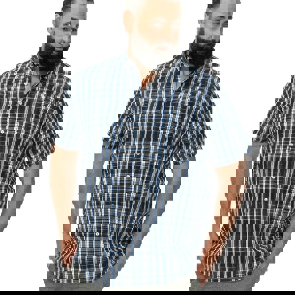 Cut from 100% cotton with a soft-touch handle, this short-sleeved shirt brings a clean, practical finish to everyday dressing. The navy checked design is paired with a classic collar for a smart, structured look that works well on its own or layered under knitwear.