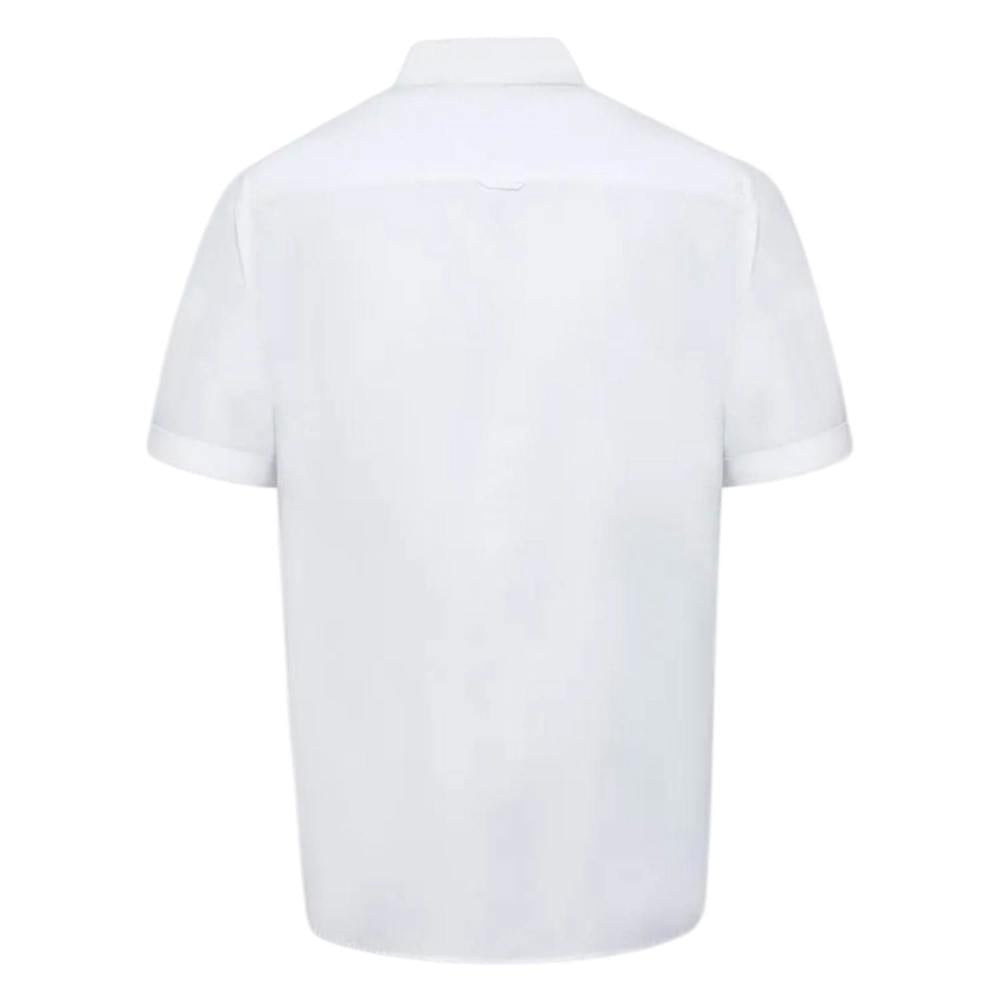 This tall short-sleeved shirt is made from oxford cloth with a plain finish. It combines cotton and polyester for a clean, structured look, finished with a turn down collar for a classic shirt profile. The white colourway keeps styling simple, whether worn on its own or layered under knitwear.