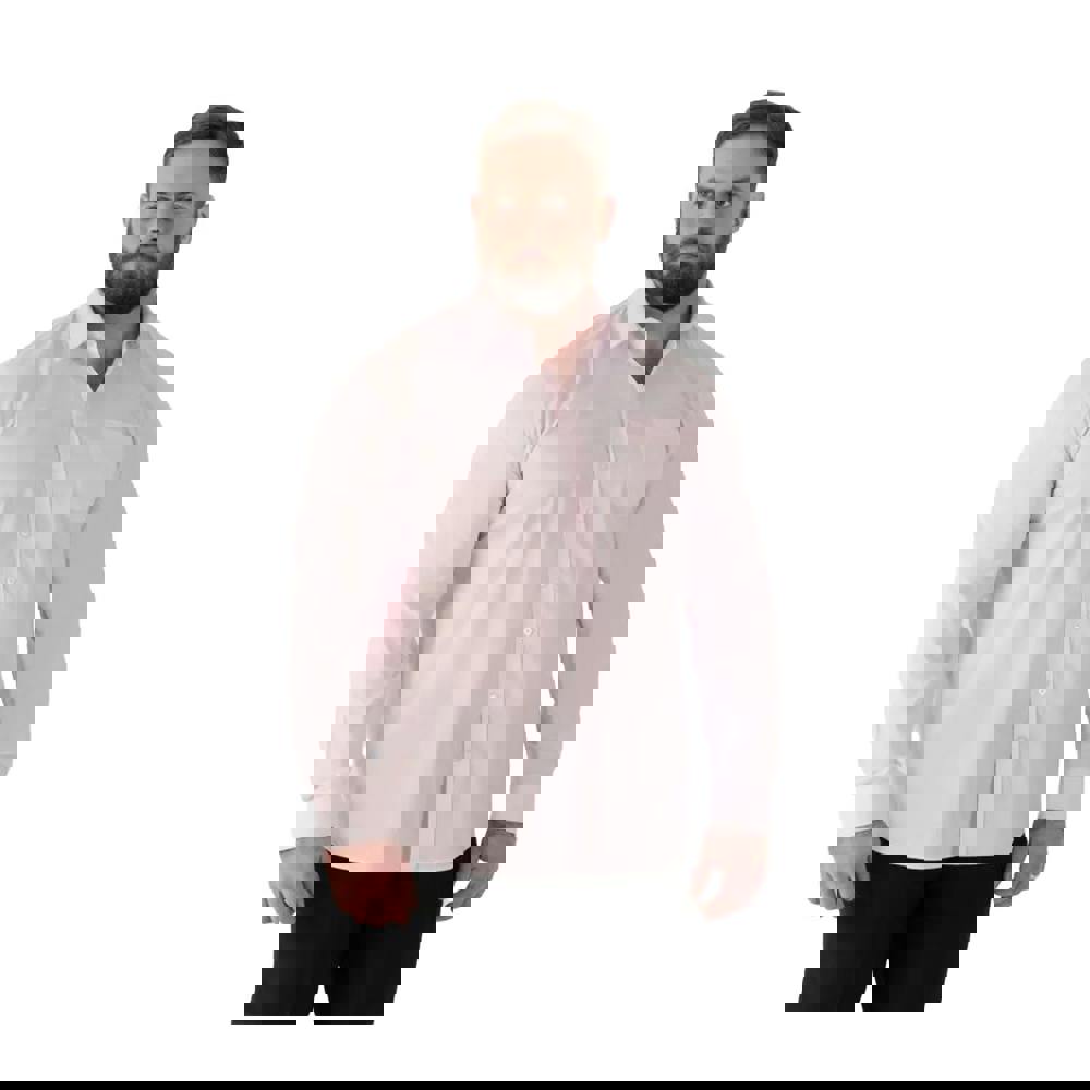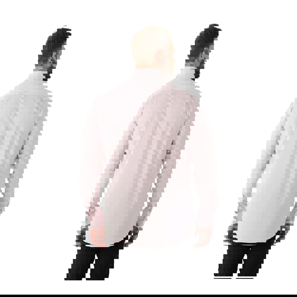 This long-sleeved shirt is made from a blend of 65% polyester, 32% cotton and 3% spandex, with 2 way stretch fabric. It comes in a plain pale pink finish for a clean, understated look that works well for everyday wear.