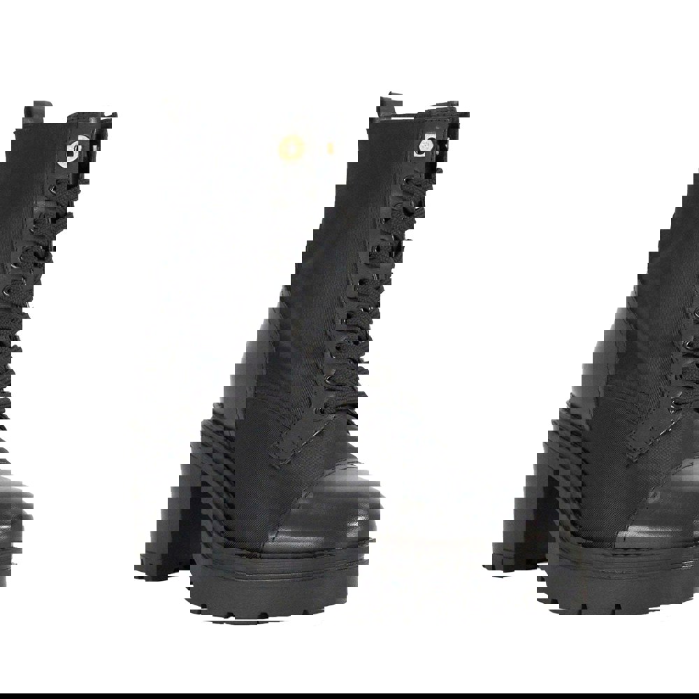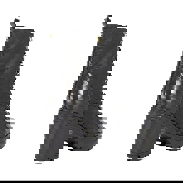 These Dune London Plotting ankle boots combine a plain black finish with a round toe and a block heel. The lace-up front uses 16 eyelets, while a pull tab supports easy handling. Cut to the ankle, they suit everyday styling with trousers, skirts, or dresses.
