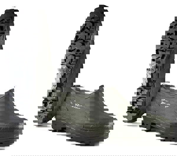 Easy-on and easy-off wellie shoe for agriculture areas. Resistant against minerals, animal and plant oils, fats, disinfectants and various chemicals including low-concentration acids, bases and fertilisers.