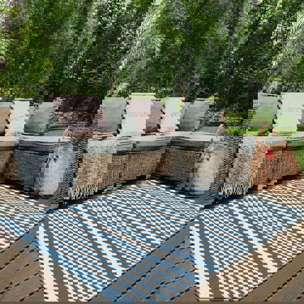 Refresh your indoor or outdoor areas with the Duo Weave Outdoor Blue Rug Modern Stripes. Featuring understated stripes, this rug combines contemporary style with durable woven construction, perfect for patios, living rooms, or high-traffic spaces.
