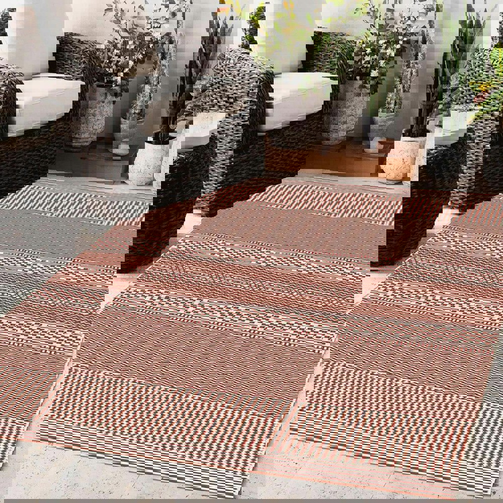 Bring sleek, modern style to indoor and outdoor spaces with the Duo Weave Outdoor Orange Rug Fine Line. Its subtle linear design adds contemporary flair to patios, decks, or busy indoor areas, while the durable woven construction ensures long-lasting performance.