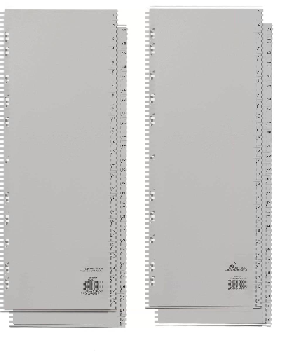 Durable polypropylene file dividers with 1-52 embossed tabs for separating your documents numerically. The German designed index dividers use universal punching for maximum compatibility